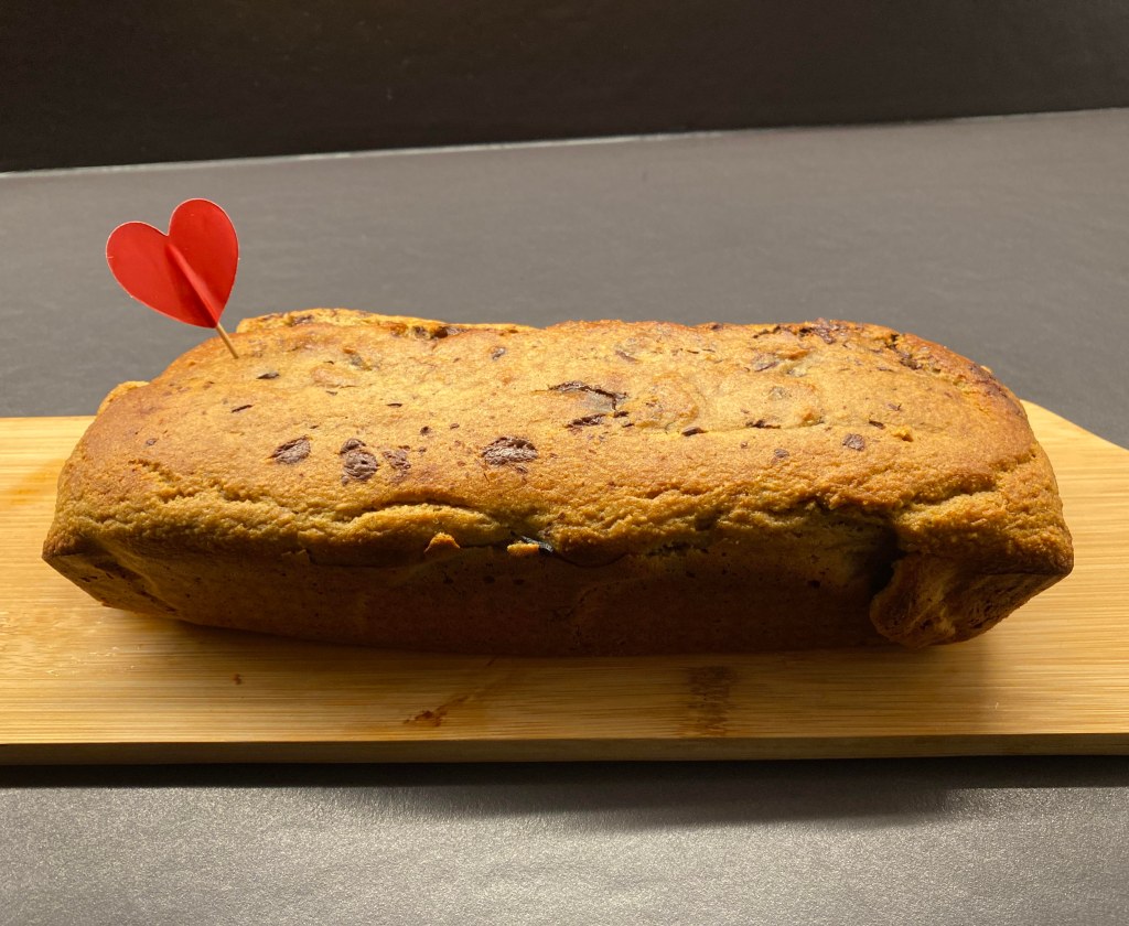 Banaanbrood op basis van amandelmeel met stukjes chocolade ~> € 22