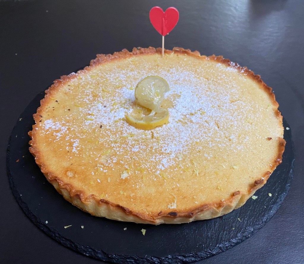 - limoen-rozemarijn cake (roomkaas-topping aan € 5 extra)